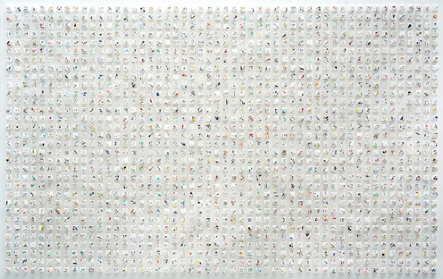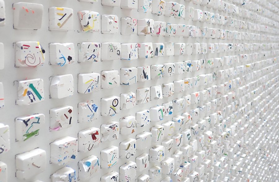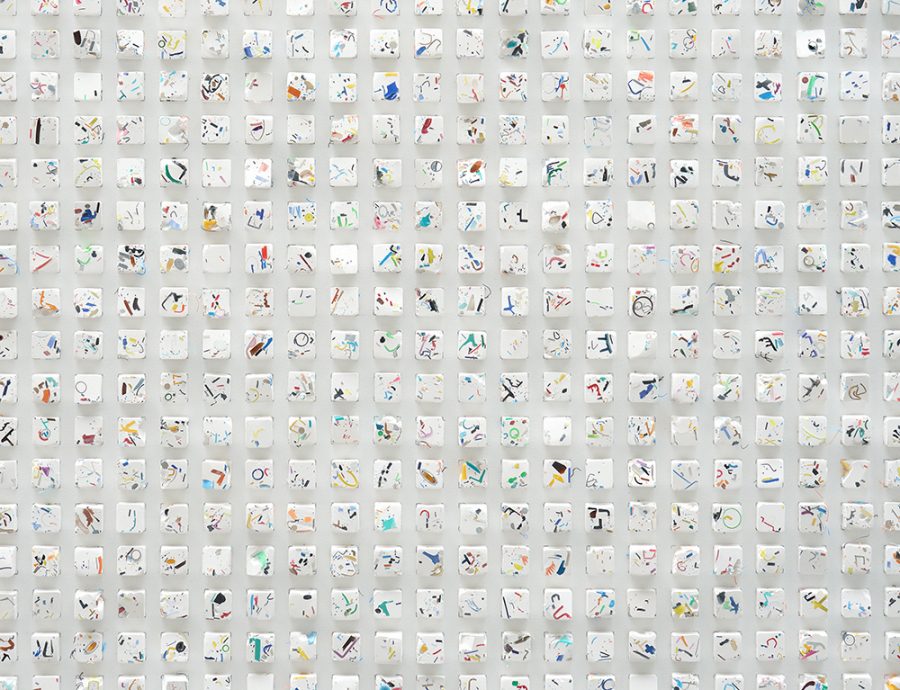 1664 individual sculptures assembled from marine plastic objects, and monofilaments all found on the UK coast, 1994-2021. and Herculite 2 Plaster.