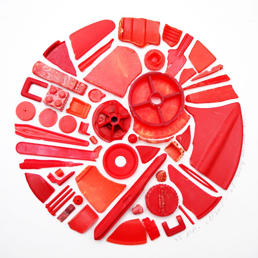 Chromatic Sampler. 2009. Found Marine plastic and text, on Card. White Box frame. Dimensions approx: 87x62x4cm.