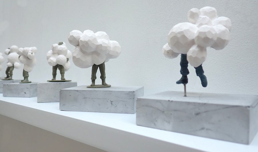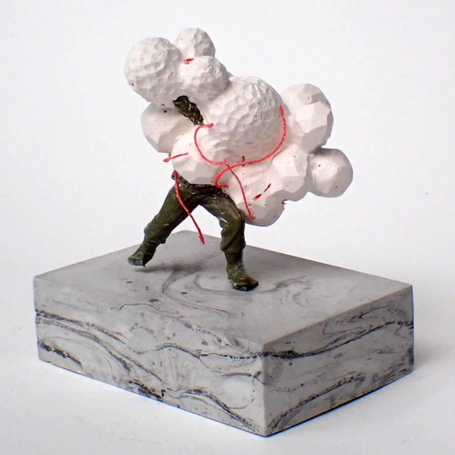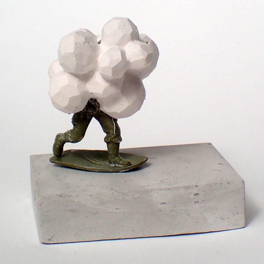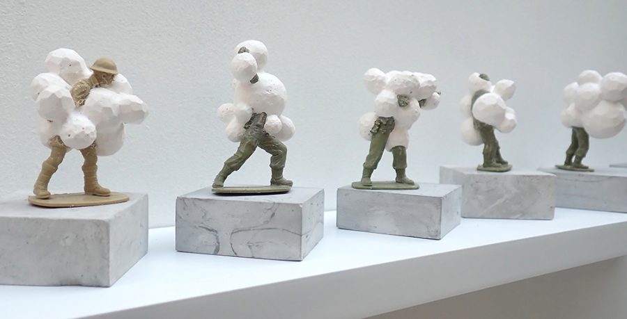 Artist’s childhood plastic military figures, Herculite 2 plaster and pigment. Found marine Plastics (where applicable).