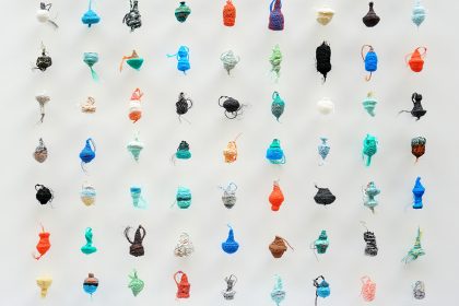 81 individual sculptures assembled from plastic monofilaments, rope filaments, and netting all found on the UK coast, 1994 – 2020.