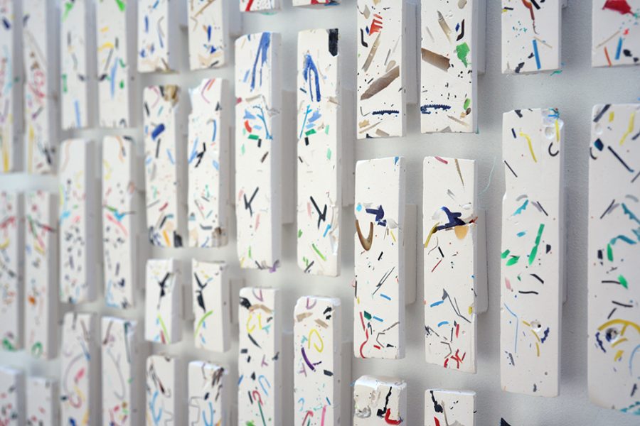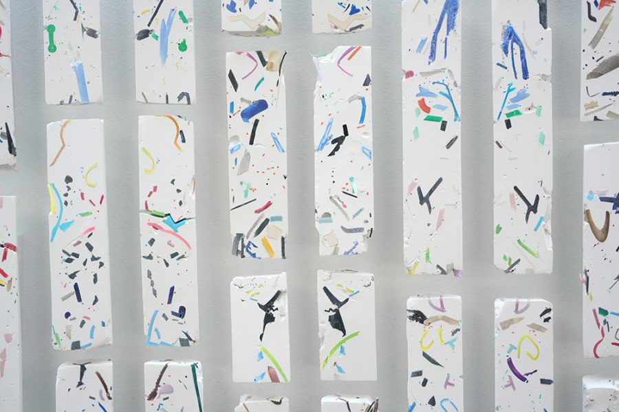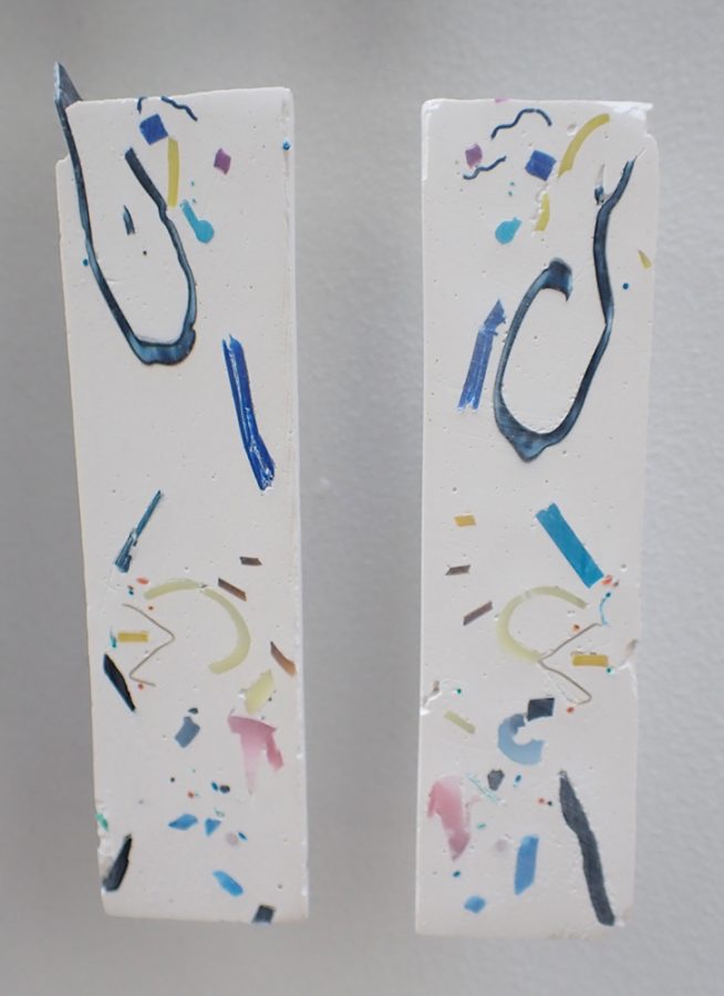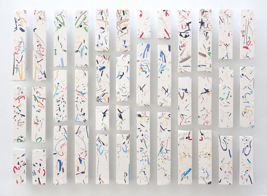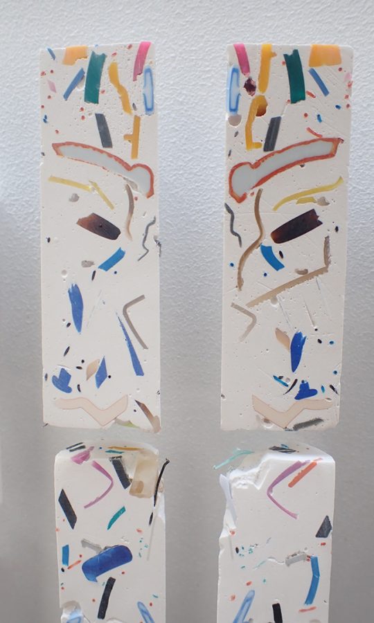 Marine plastic objects, monofilaments all found on the UK coast, 1994-2024. Herculite 2 Plaster.