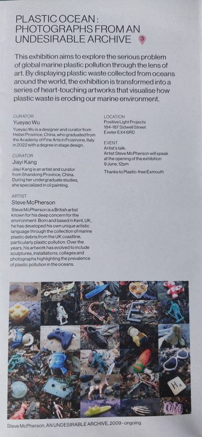 PLASTIC OCEAN (curated by Jiayi Kang and Yueyao Wu) is a solo exhibition by photographer Steve McPherson showcasing his ongoing documentation of global marine plastic pollution. Forming an ‘undesirable archive’ of detritus washed up on our beaches, this photographic project aims to visualise the extent to which plastic waste impacts on the marine environment.
