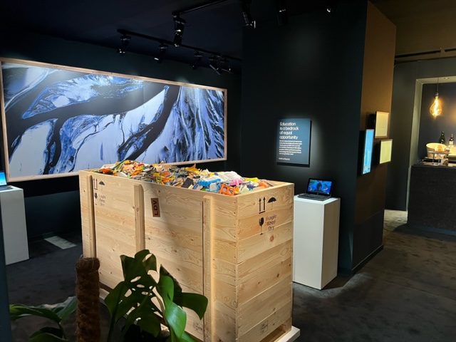 Part of the Hewllet Packard ‘Go Beyond’ exhibition raising awareness of sustainability and environmental issues. At the 2023 Cannes film festival – ‘Objects Lost’ sculpture at the Cannes. Showing a shipping crate overflowing with ocean plastic.