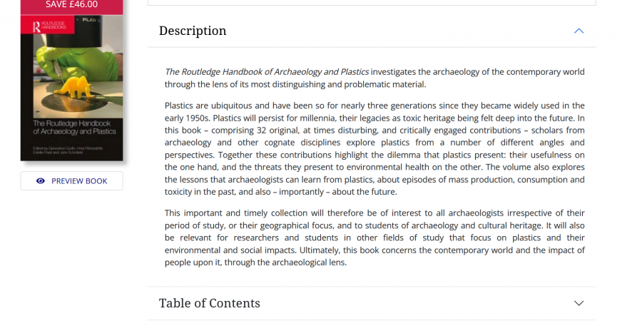 The Routledge Handbook of Archaeology and Plastics investigates the archaeology of the contemporary world through the lens of its most distinguishing and problematic material.